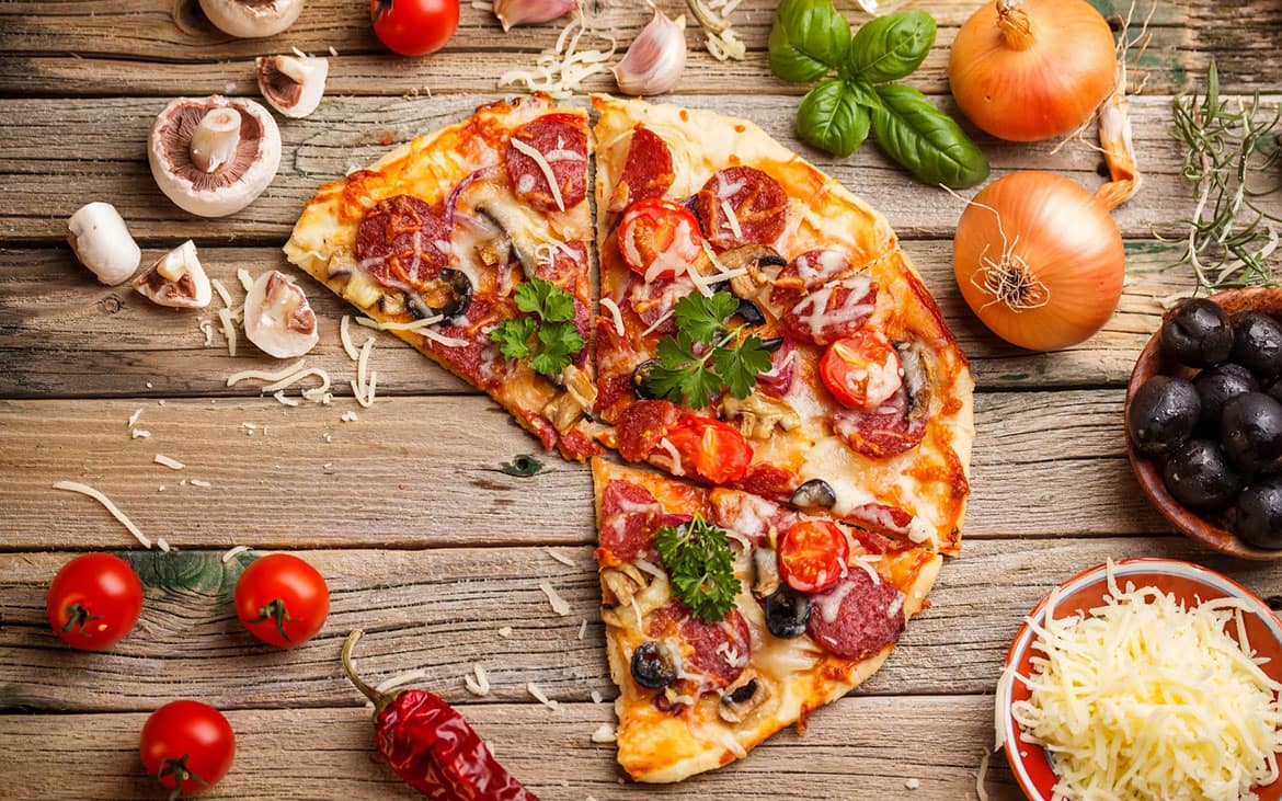 The pizza is delicious! The crust is thin and crispy, great sauce, and awesome cheese blend. And it makes a cute cheap date!